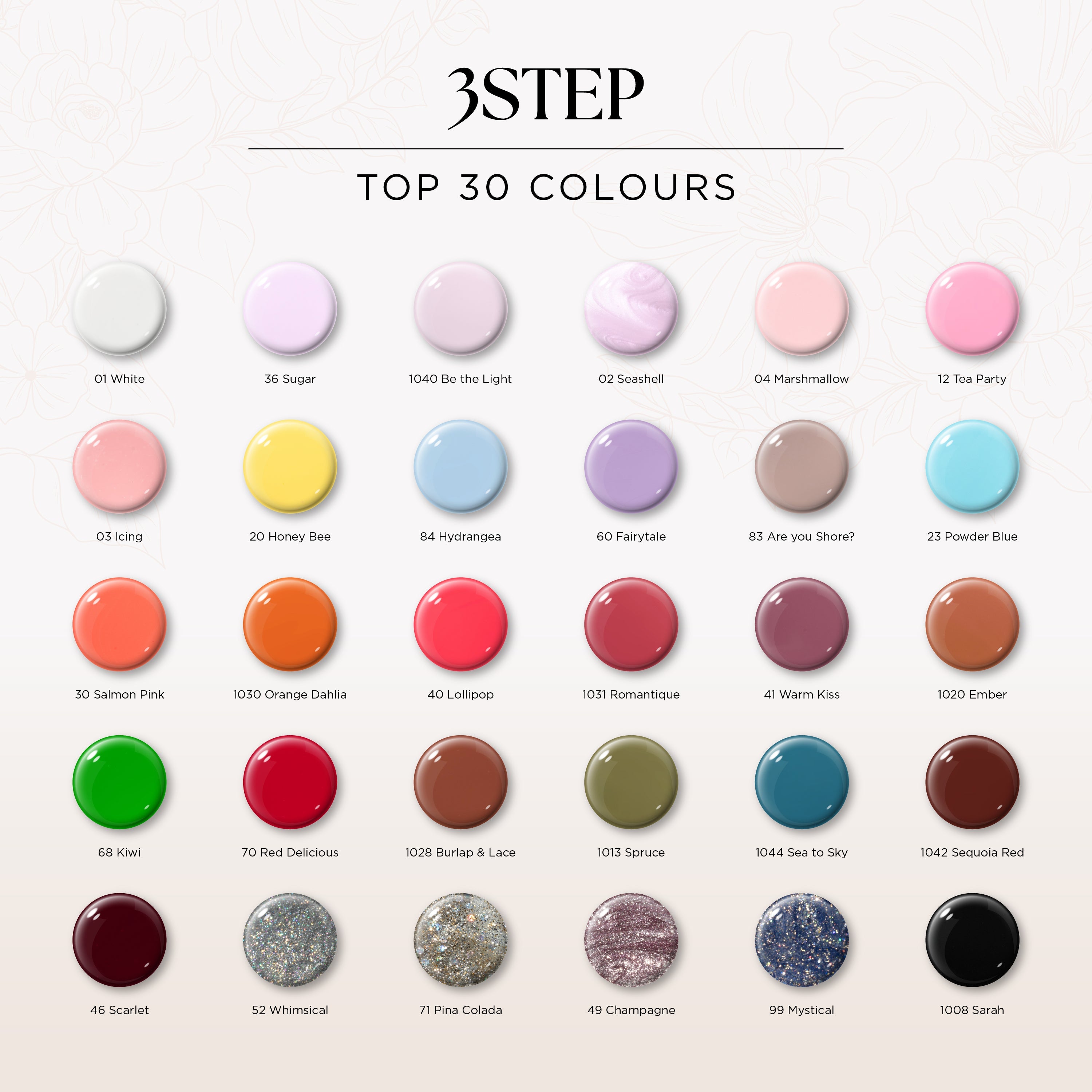 3STEP is a traditional three-step gel polish formula requiring use with BSG Base and Top (sold separately).
