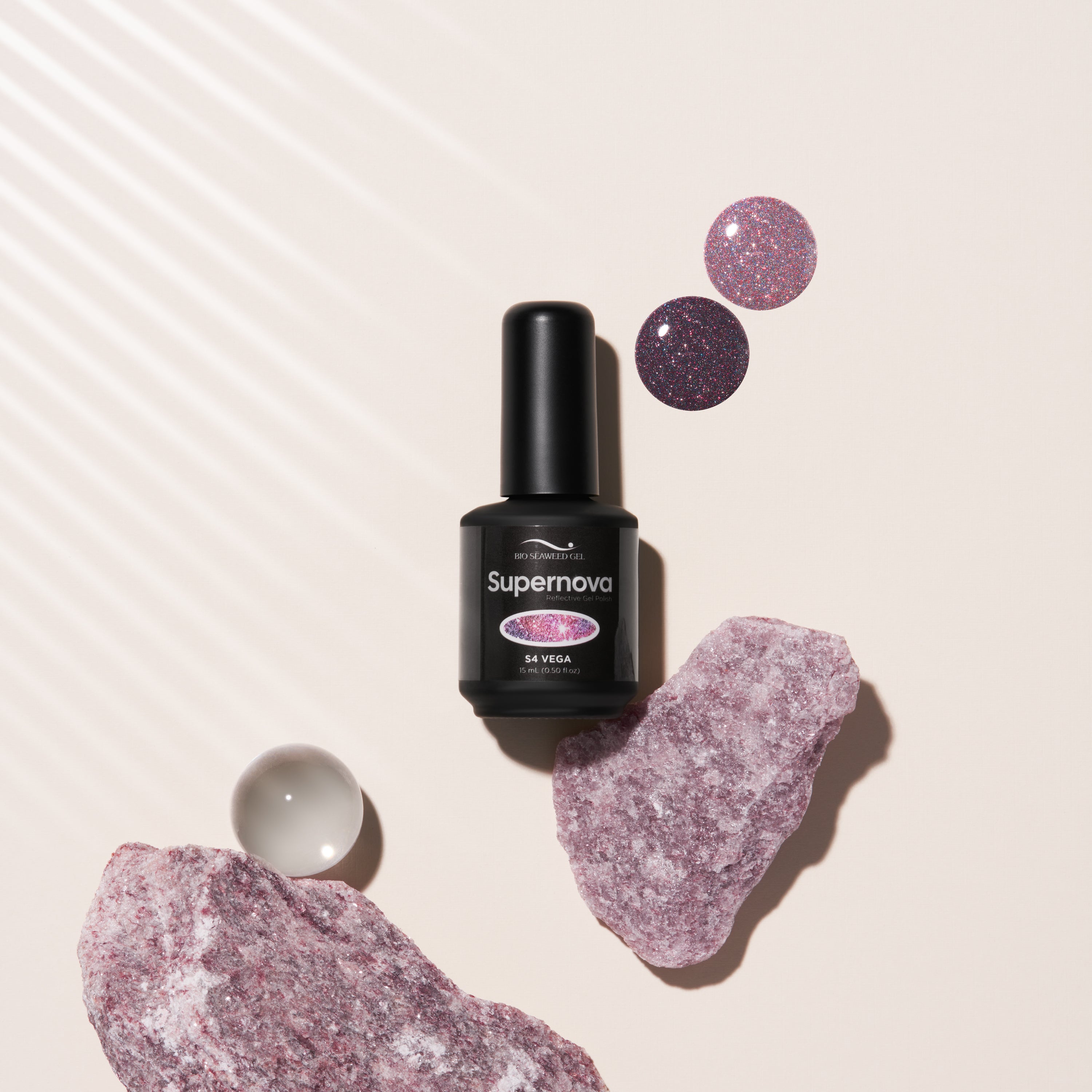 Experience the brilliance of Supernova Reflective Gel Polish, a three-step formula infused with shimmer and retroreflection technology. This unique gel polish lights up under direct light, creating a stunning reflective effect, while appearing as a sleek, shimmery finish in normal lighting. The sheer, buildable formula lets you customize your look—from subtle shimmer to full opacity. Perfect for bold designs and artistic creations that stand out in any light.